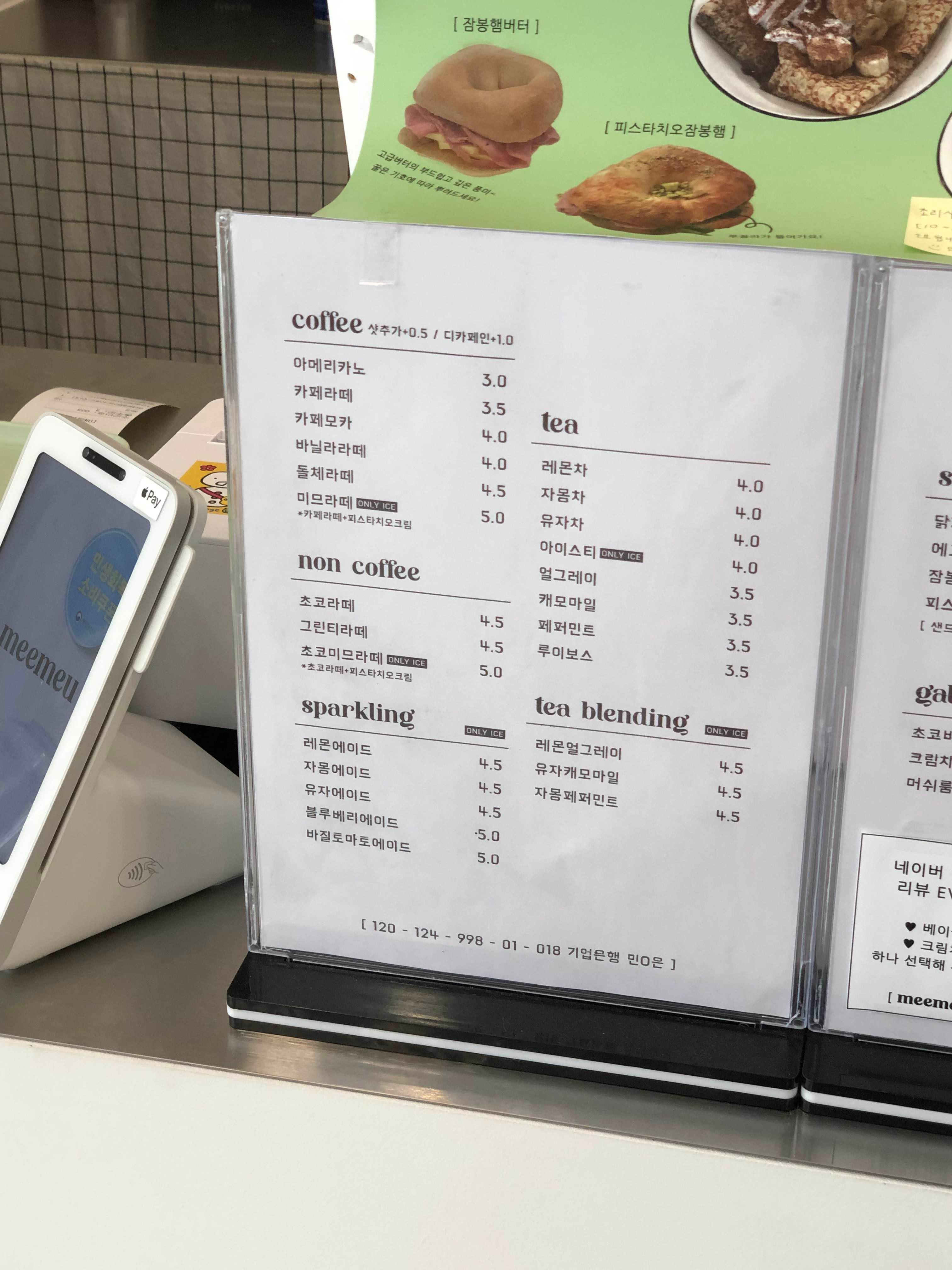 ▶ 커피, 디저트, 베이글, 샌드위치 메뉴
