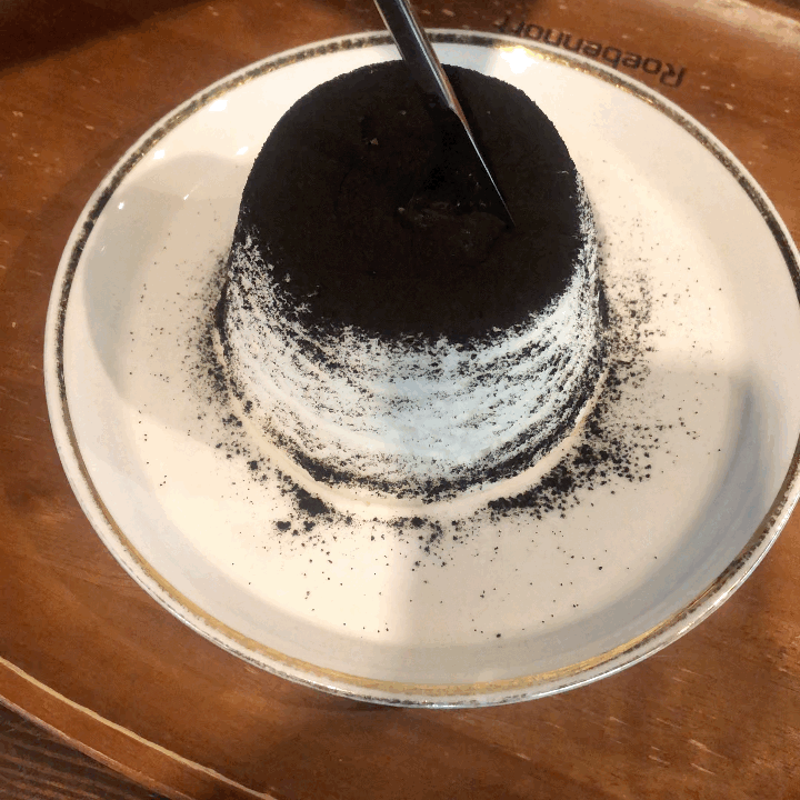 -엔젤 쉬폰 가운데 우유 생크림과 코코아 파우더가 올라간 디저트