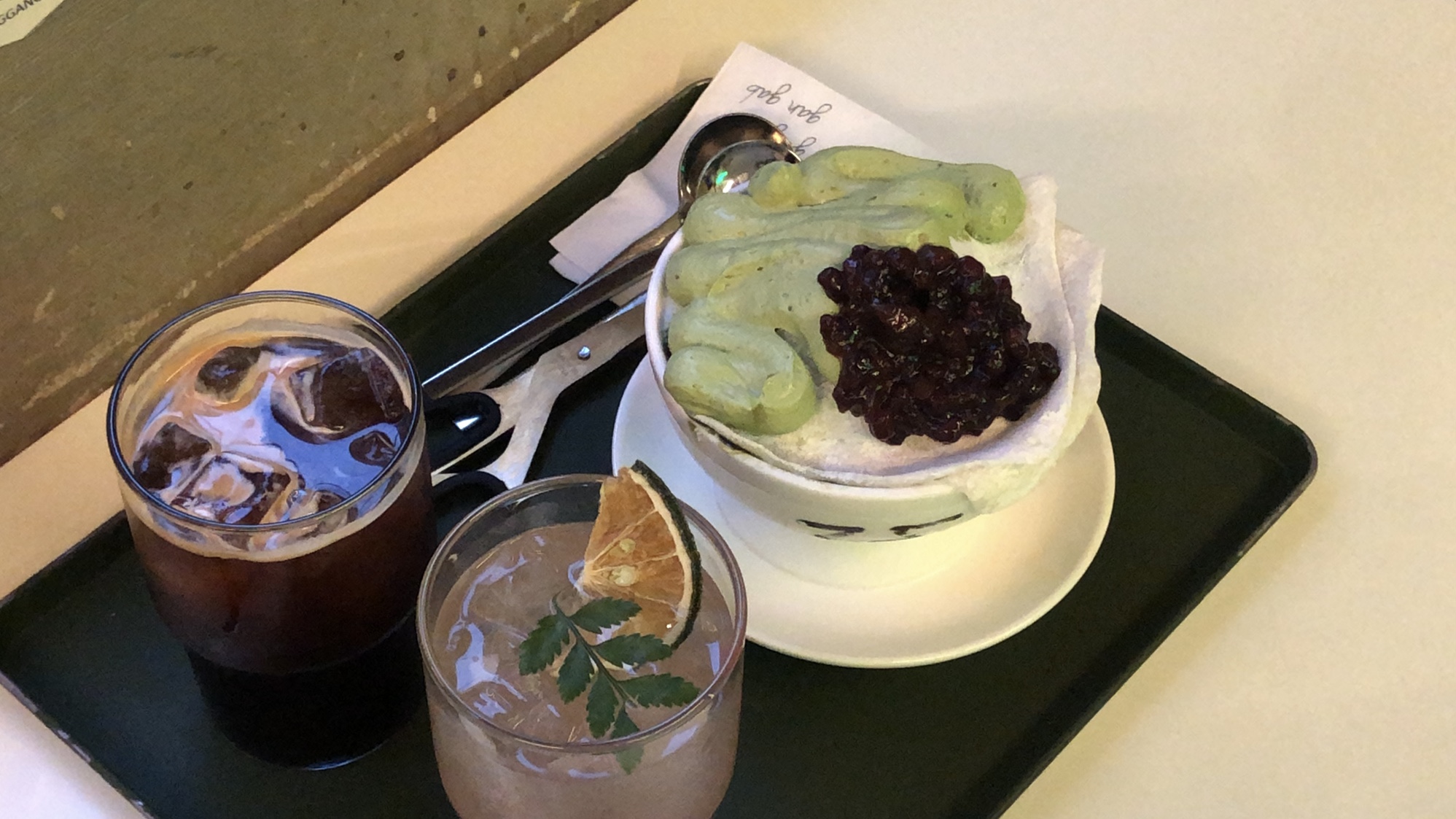 -아이스아메리카노, 샤인머스켄 & 자몽 에이드, 말차 모찌 빙수