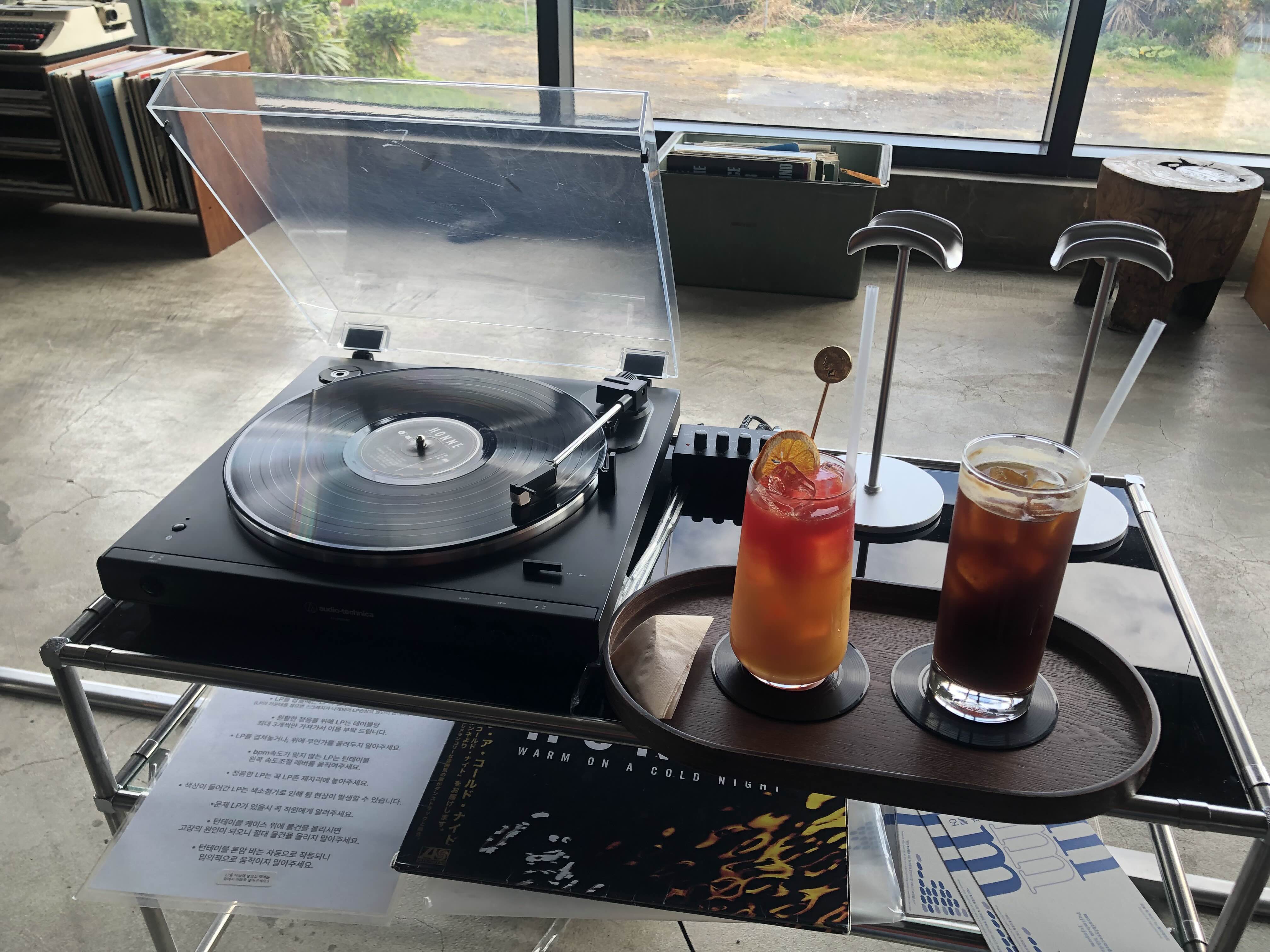 음료도 나왔겠다 듣고싶은 LP가져가다 들으면서 쉬었어요