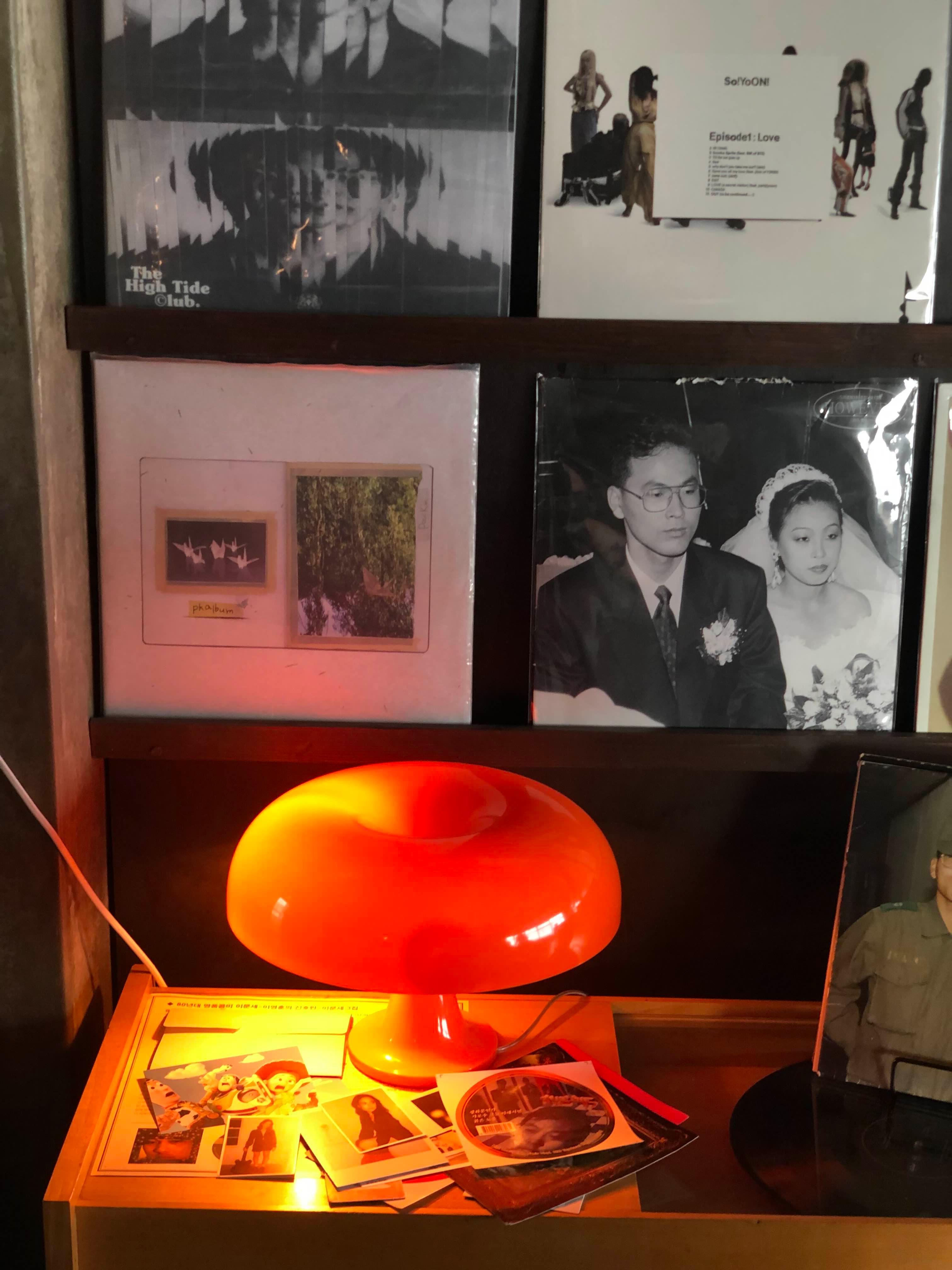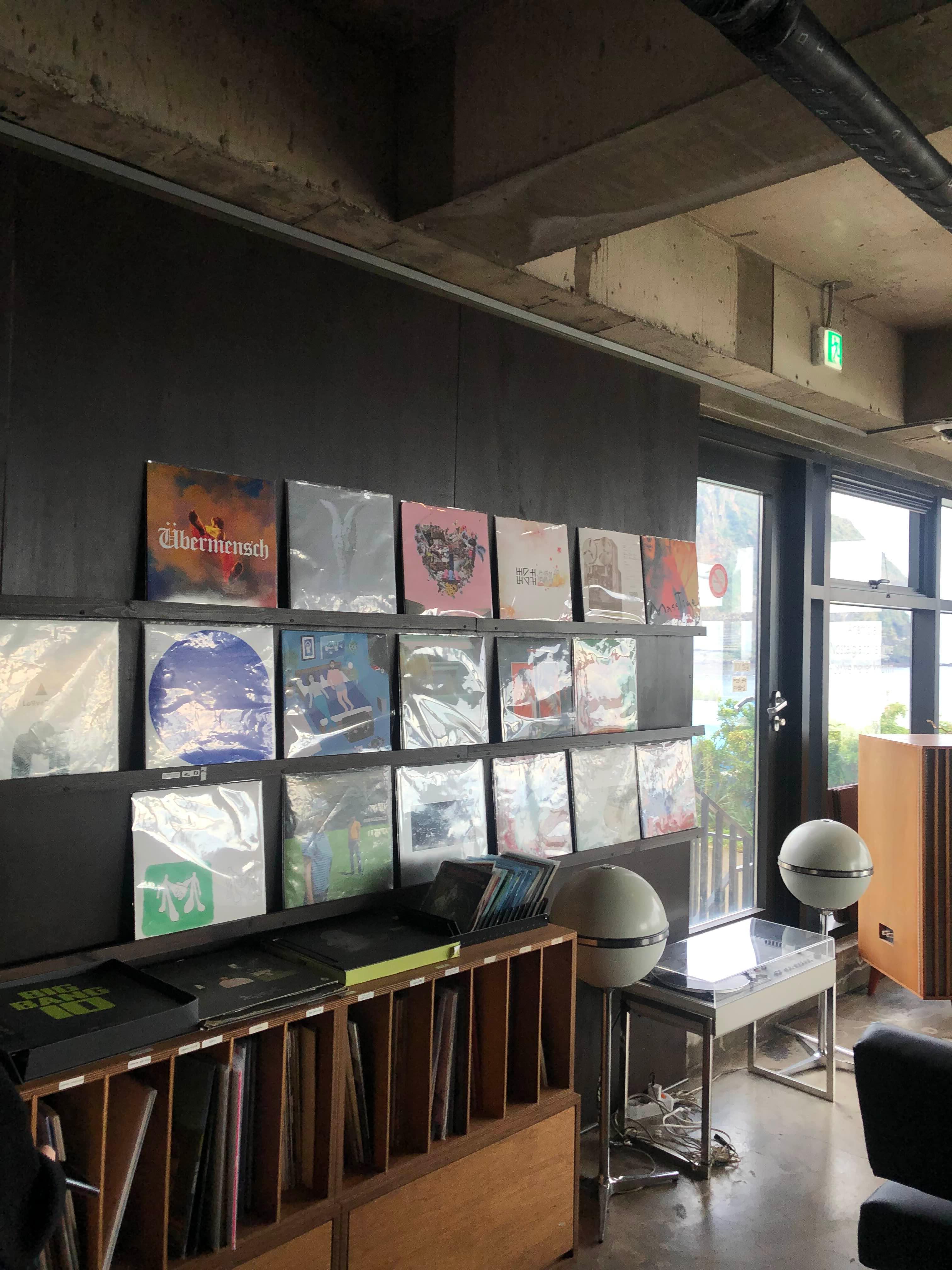 양쪽 벽에 LP들이 진열되어있고 바닥에도 많이 있었어요!