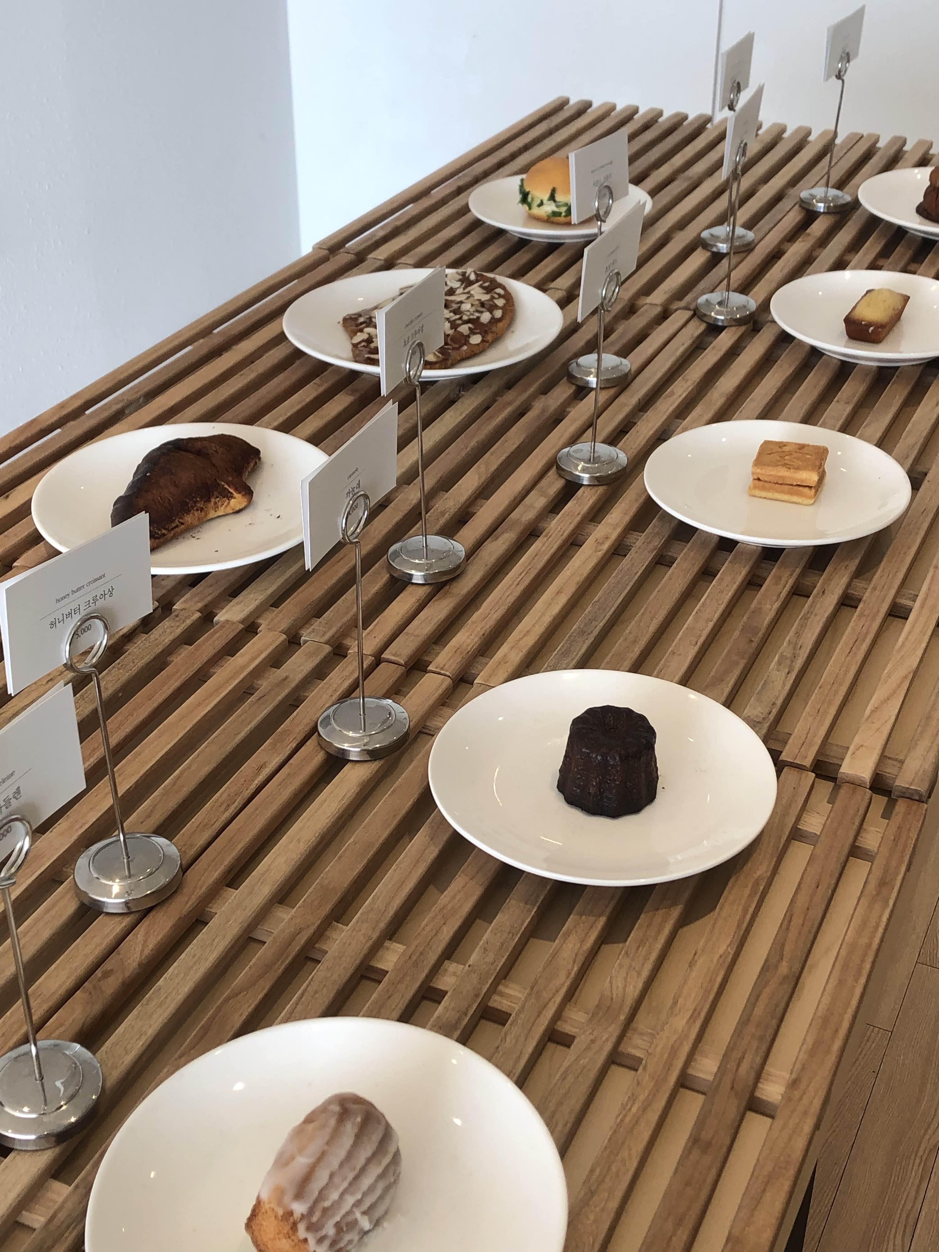 초당샌드, 레몬마들렌, 휘낭시에, 까눌레, 초코 크루아상, 허니버터 크루아상, 약과쿠키, 아몬드 크룽지, 대파 크림칮 ㅡ도넛, 옥수수 푸딩, 딸기 푸딩